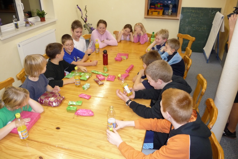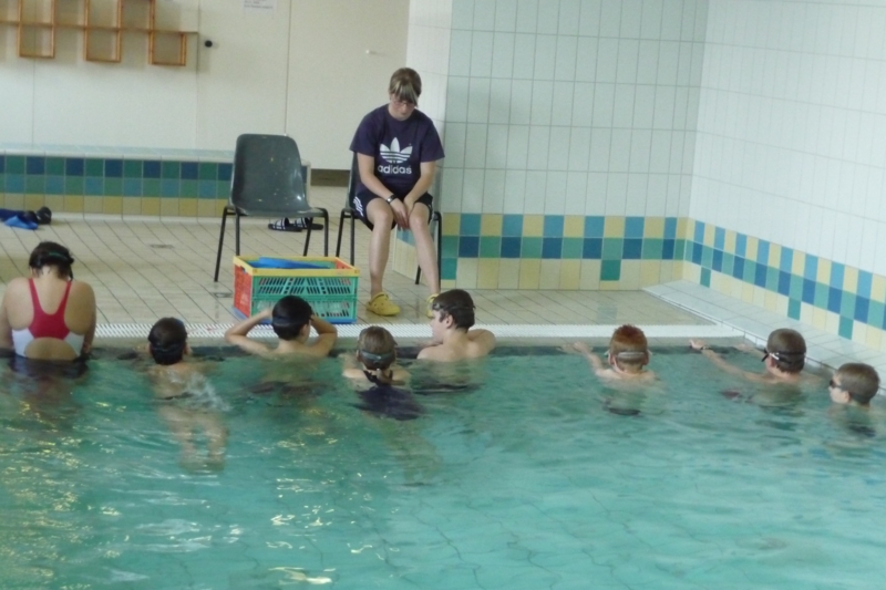 Am Sonntag wurden wieder alle 06.00 Uhr zum Frühsport geweckt. Nach dem Frühstück gingen die Großen 08.30 - 10.00 Uhr schwimmen und die Kleinen schauten sich auf Video an, wie sie am Vortag geschwommen waren. Von 10.00 - 11.30 Uhr wurde gewechselt. 12.00 Uhr zum Mittag gab es Kartoffelbrei und Fischstäbchen für alle. Nachdem wir die Zimmer ausgeräumt hatten, spielten wir noch 1 Stunde Fußball draußen, bis 14.00 Uhr schließlich die Eltern kamen.