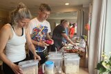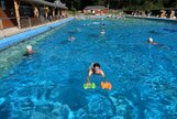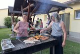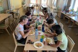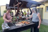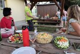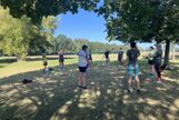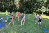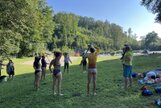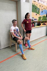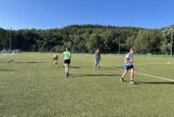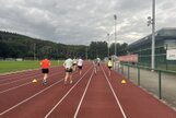 Am Samstag, den 24.08.24 starteten wir zum ersten Trainingslager der Masters mit 11 Teilnehmern nach Flöha. Pünktlich 08.30 Uhr waren alle vor Ort. Nach einem kurzen Zimmer beziehen, starteten wir bereits 09.00 Uhr mit der ersten Athletikeinheit: verschiedene Laufübungen mit und ohne Ball zur Erwärmung, Therabandübungen zur Arm- und Rumpfkräftigung, lustige Staffelspiele und eine Runde Dehnung. Dabei wechselten wir immer wieder zwischen dem sonnigen Kunstrasenplatz und dem schattigen Plätzchen unter den Apfelbäumen, denn die Sonne schien bei fast 30 Grad. 11.30 Uhr freuten sich alle über Spaghetti mit Wurstgulasch zum Mittagessen. 12.30 - 15.00 Uhr schauten wir uns gemeinsam unsere Schwimmvideos an. Bereits im Vorfeld beim Training wurden alle Teilnehmer bei Rücken, Brust, Kraul, Delfin und Delfinbeinen gefilmt. Mit sehr viel Interesse analysierten wir Hand- und Fußstellungen, Beinbewegungen oder Wirbelsäulenbeweglichkeit von Rücken, Brust und Kraul. Anschließend schnappten sich alle ihre Schwimmsachen und wir fuhren ins Naturbad Falkenau. Bei mittlerweile 36 Grad Hitze und 22 Grad Wassertemperatur war das Bad gut gefüllt und für unser praktisches Techniktraining kein Platz. Davon ließ sich aber keiner die Stimmung verderben. Wir schwammen und plantschten im Wasser, aßen leckeren Kuchen, spielten Volleyball und wiederholten noch einmal die Theraband- und Dehnübungen. 18.30 Uhr fuhren wir wieder zurück zur Herberge, wo schon der Grill und unser Abendessen bereit standen. Nach dem Abendbrot spielten wir noch ein kleines Spiel und quatschten gemütlich. 23.30 Uhr machten sich auch die Letzten ins Bett.