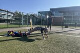Der Sonntag begann 07.00 Uhr mit einem 45minütigen Frühsport auf der Tartanbahn: 20 min Laufen, 15 min Lauf-ABC und 10 min Mobilisationsübungen. Trotz, dass dieser Teil freiwillig war, hatten sich fast alle so früh ais dem Bett gequält und mit guter Laune mitgemacht. 08.00 Uhr gab es Frühstück. Danach trafen wir uns 09.00 Uhr in der kleinen Turnhalle zur zweiten Athletikeinheit mit einem Laufkraftkreis, Kräftigungsübungen mit den Loop-Bändern (kurze Therabänder) und noch einer intensiven Dehneinheit. Bis 11.00 Uhr nutzten die Meisten die Zeit noch mal zum Duschen, bevor wir uns von 11.00 - 12.00 Uhr im Fernsehrraum noch das gestern fehlende Delphinschwimmen anschauten und das schöne Wochenende auswerteten. Zum Mittagessen ließen wir uns Schnitzel mit Kaisergemüse, Kartoffeln und Dessert schmecken. Anschließend räumten wir die Zimmer und traten die Heimreise an.