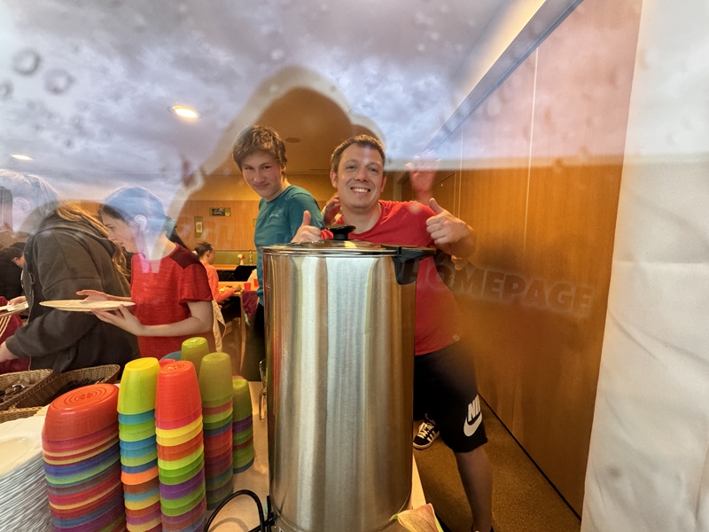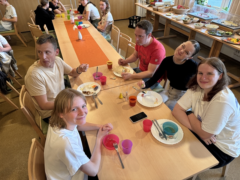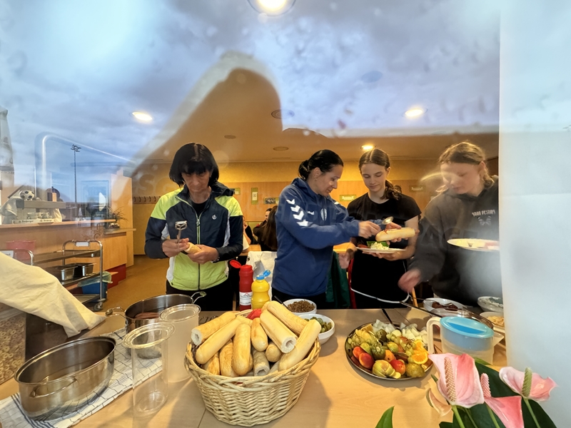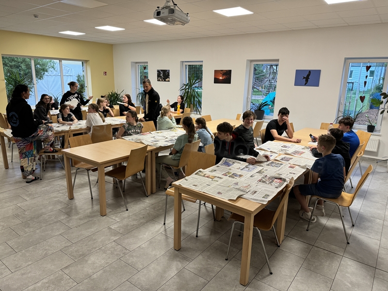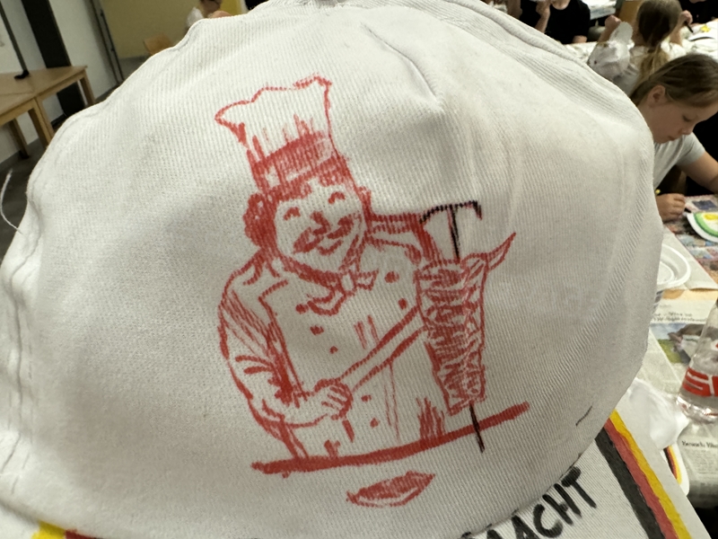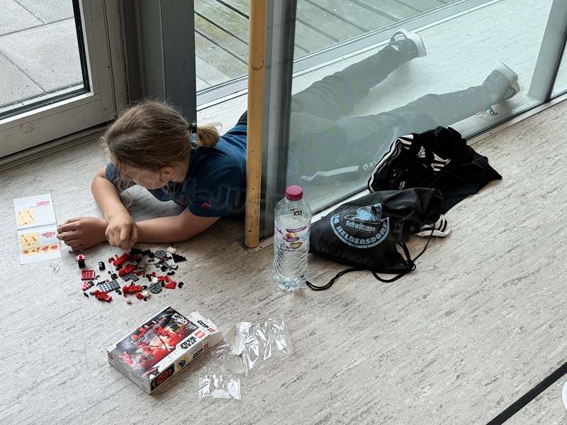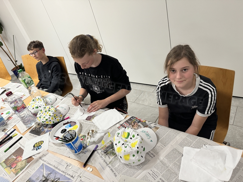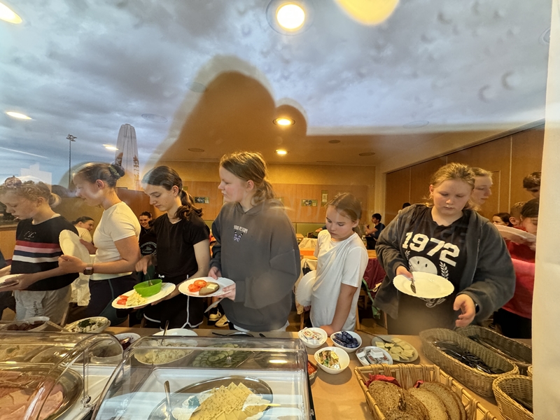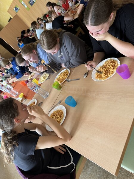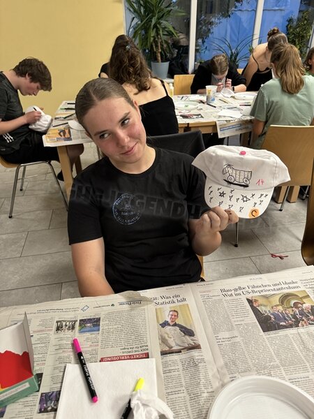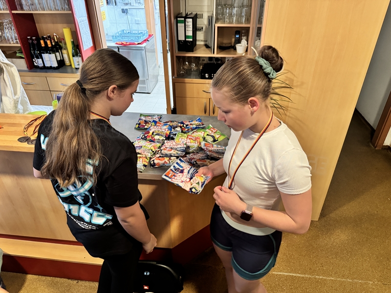 Zum 33. Trainingslager in Flöha trafen wir uns mit 34 Schwimmern vom 31.05.-02.06.24. Die Planung für dieses SOMMER-Trainingslager sah wie immer viele sportliche Aktivitäten im Freien und unseren traditionellen Freibadbesuch vor. Doch am Mittwoch vergangene Woche mussten wir noch einmal alles umplanen, denn der Wetterbericht sagte für uns dieses Wochenende Unmengen von Regen und Schlimmeres voraus. (Hier die Bilder aus dem Förderverein von 2013). Am Freitag war zwischen 16.30 und 17.30 Uhr Anreise und Zimmer beziehen. Die erste Herausforderung bestand hierbei im Beziehen der Betten. Es war für uns sehr schnell klar, wer das noch nie zu Hause selbst gemacht hatte und wir amüsierten uns köstlich über die Versuche Einiger, den Bettbezug über die Bettdecke zu ziehen. Nach dem Abendessen 18.30 Uhr stand uns keine Turnhalle zur Verfügung (da parallel zu uns mehrere Abschlussfeiern stattfanden und wir im Vorfeld nichts gemietet hatten, weil wir ja mit schönem Wetter gerechnet hatten). So nutzten wir das kleine Volleyballfeld im Auenstadion für ein paar Ballspiele. Als aber der Regen zu stark wurde, zogen wir uns in den Aufenthaltsraum zurück und teilten die Gruppe in die 4 Teams ein, die am Samstag jeweils unsere Hockeystaffeln und das Turnier zusammenspielen. Jeder bekam ein weißes Basecap und Stoffmalfarben. Die Teams sollten sich einen Teamnamen überlegen und passend dazu die Basecaps gestalten. Während manche mit dieser Aufgabe zunächst etwas überfordert waren, begannen andere sehr eifrig und mit viel Liebe die Caps zu bemalen. Gegen 21 Uhr hatten es alle geschafft und wir gingen in unsere Zimmer und irgendwann auch ins Bett.