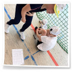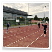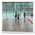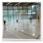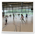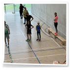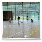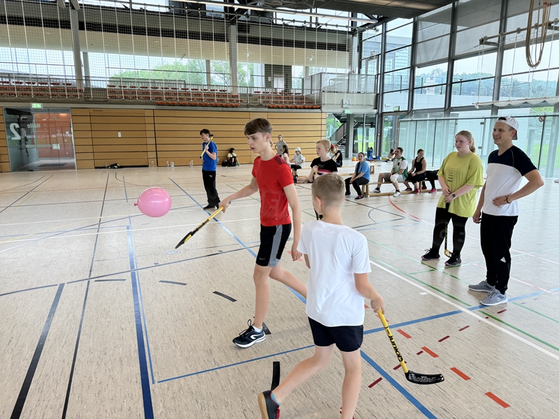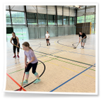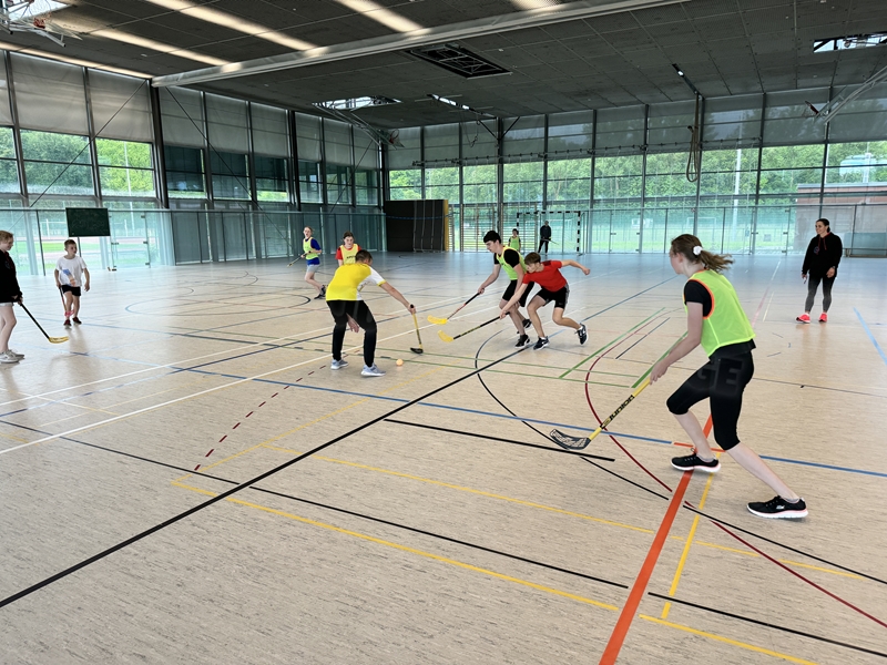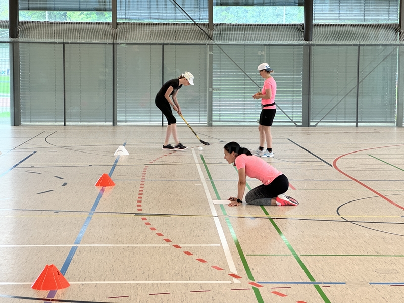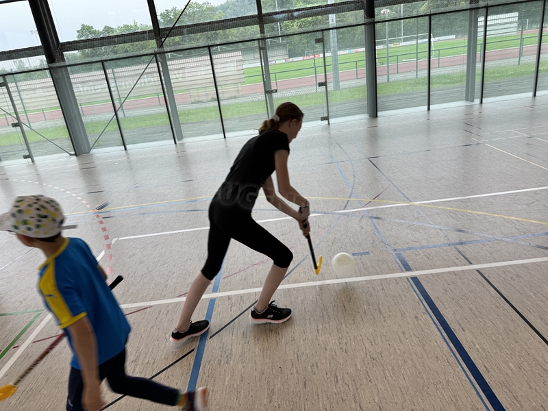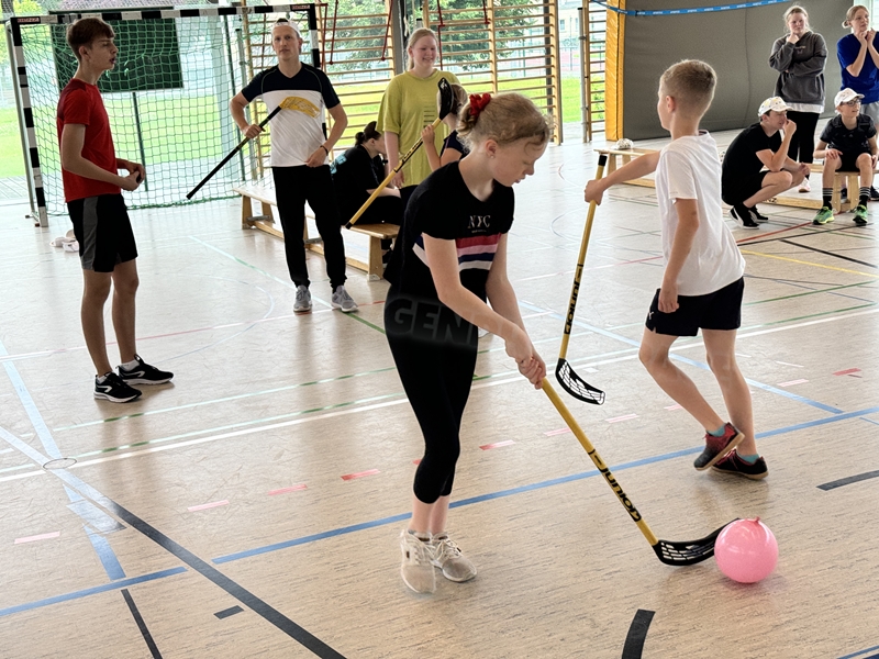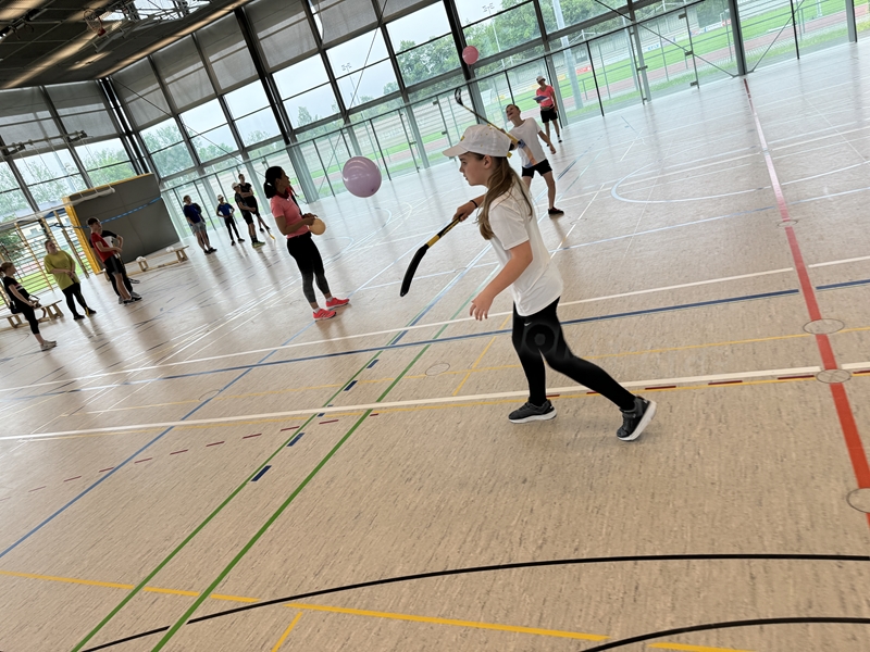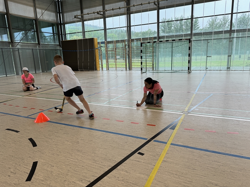 mit dem Hockeyschläger und Köpfchen gefragt waren. Am Ende der Einheit spielten