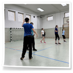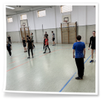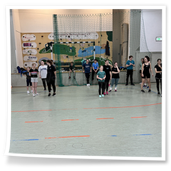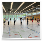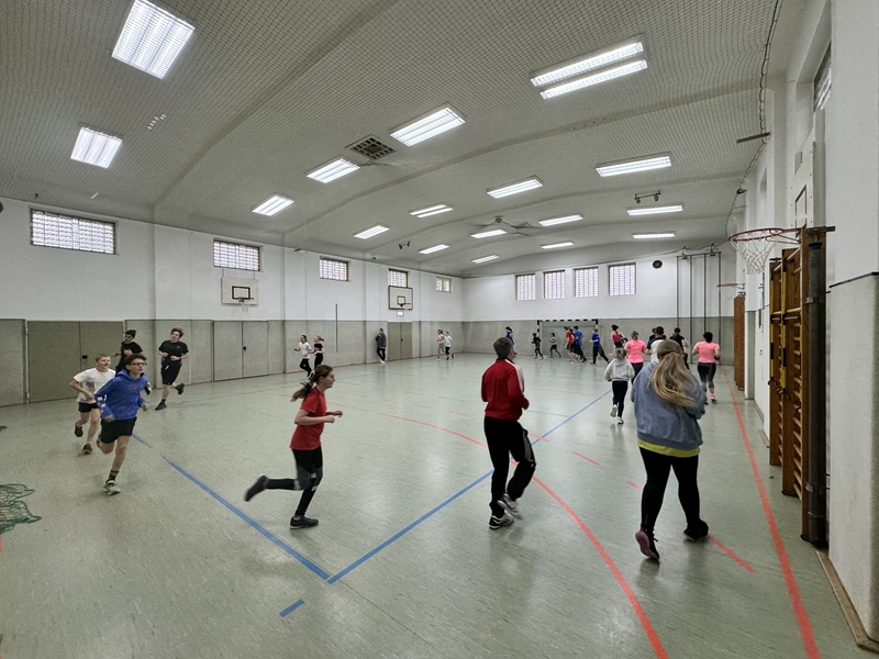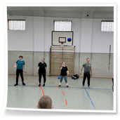Vormittag verbrachten wir in der großen Turnhalle des Samuel von Puffendorf –
