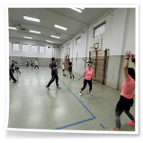 begann wie immer mit Frühsport. Da es nach wie vor regnete, mussten wir in die