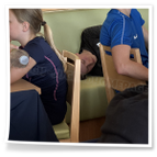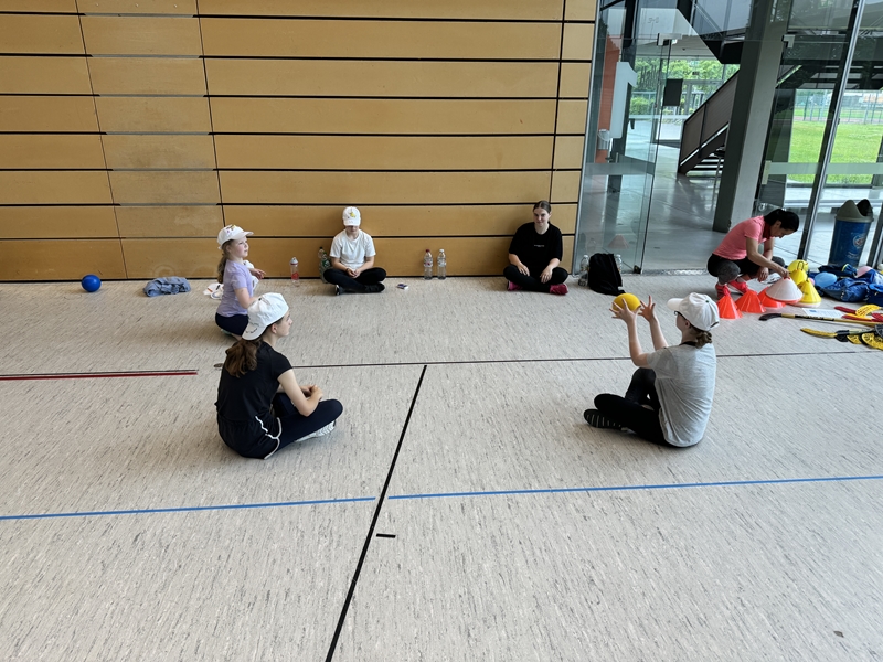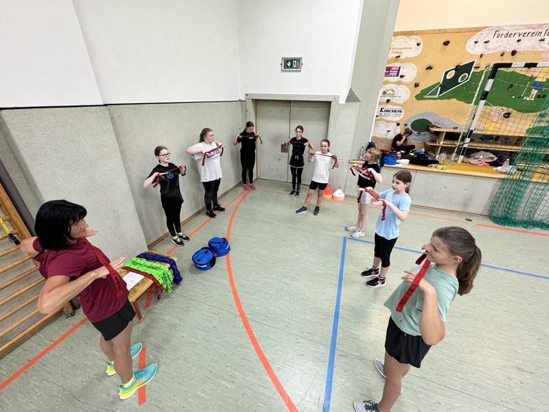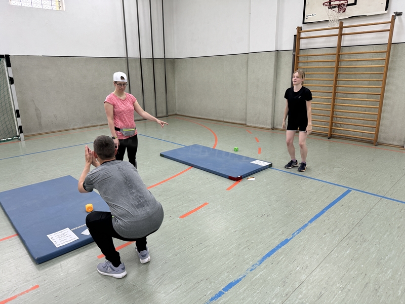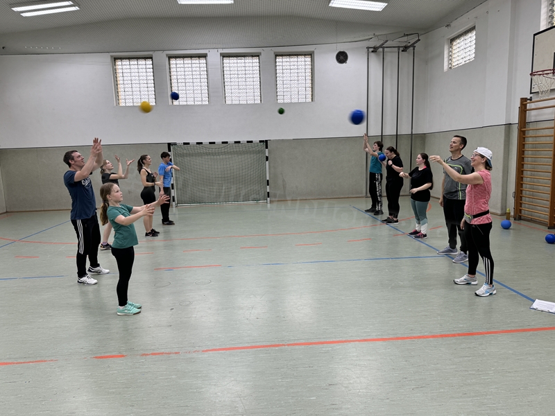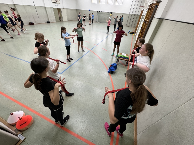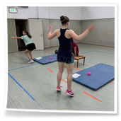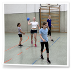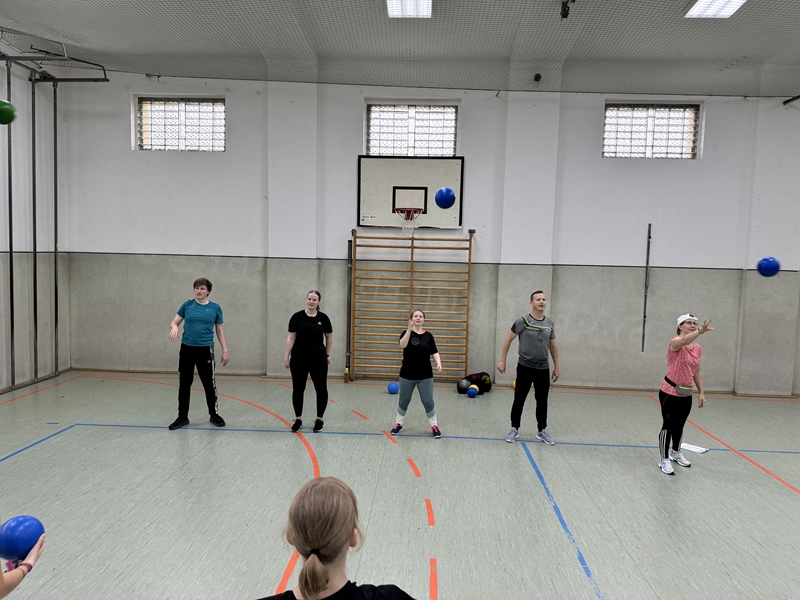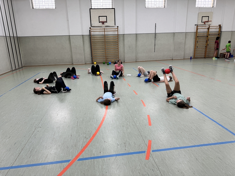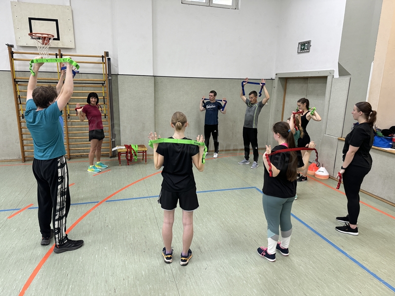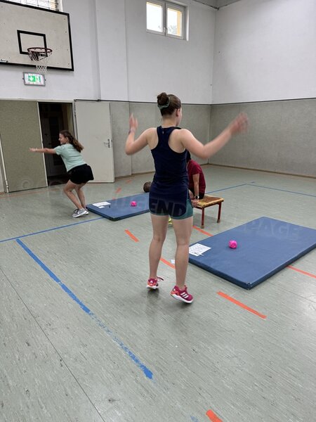 gab es auch drei Stationen: Balltraining bei Betty, Theraband-Übungen bei Pia
