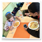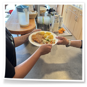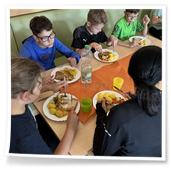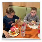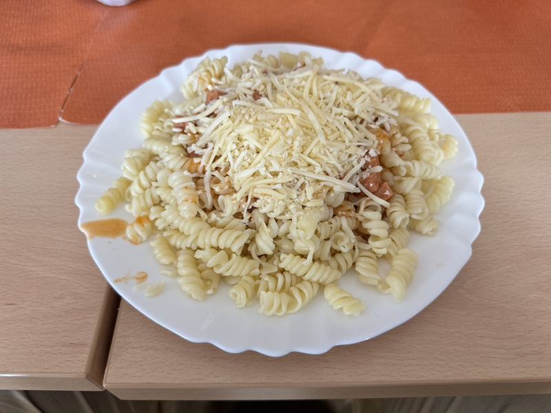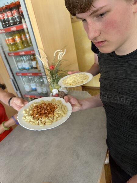 wir sofort zum Mittagessen (Schnitzel mit Gemüse und Kartoffeln). Am Ende stand