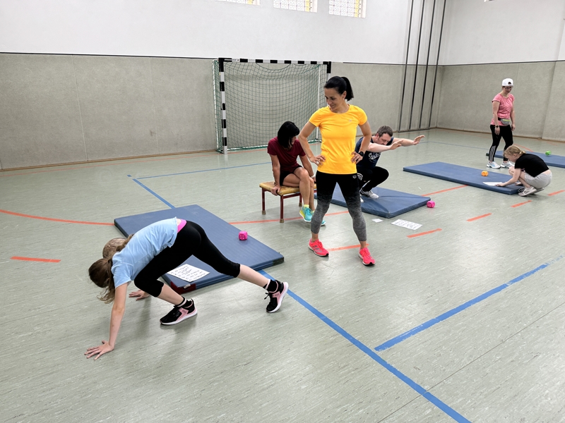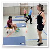 und Beintraining bei Ellen. Jede Gruppe musste 10 Minuten an jeder Station