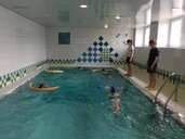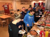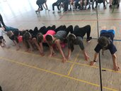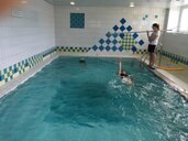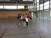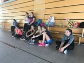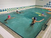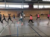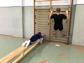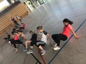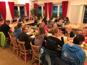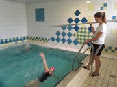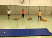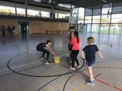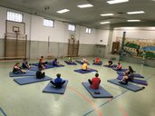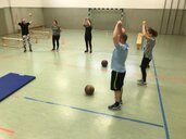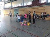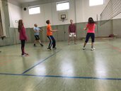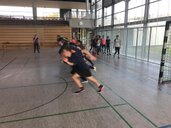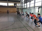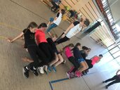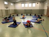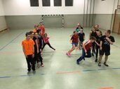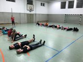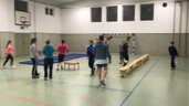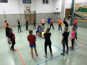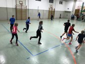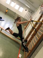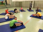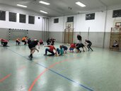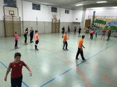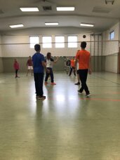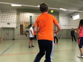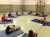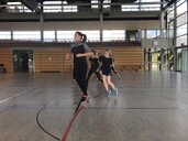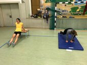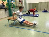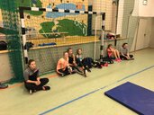 Der Sonntag begann 7.30 Uhr mit Frühstück. Keiner von uns konnte sich noch normal bewegen ;-)... Trotzdem zogen sich alle freudig ihr Sportsachen wieder an und starteten in die Turn- bzw. Schwimmhalle. An diesem Vormittag wurden in der Schwimmhalle intensiv Wenden geübt. Dabei gab es 2 Gruppen. Der Rest absolvierte in der Turnhalle Koordinationsübungen, 2 Runden Laufkraftkreis und zum Abschluss lockeres Ball-über-die Schnur. Nach dem Mittag (Schnitzel mit Gemüse und Kartoffeln) räumten wir die Zimmer und warteten auf die Eltern.
