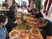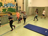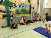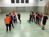 Am Freitag trafen wir Betreuer uns mit 21 Kindern und Jugendlichen für 2,5 schöne Tage in Flöha. 5 Teilnehmer mussten krankheitsbedingt leider zu Hause bleiben. :-( Nach einem ausgiebigen Abendbrot starteten wir das Training mit Reaktionsspielen, denn noch waren alle fit und frisch. Und natürlich gab es noch starke 1,5 Stunden Zweifelderball - unser Traditionsspiel. Den Rest des Abends verbrachten alle auf den Zimmern mit Quatschen, Lachen, Quatschen und Lachen.