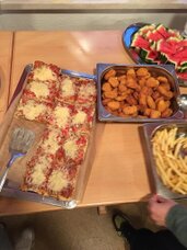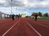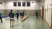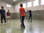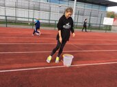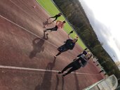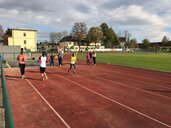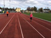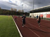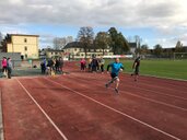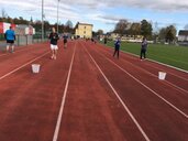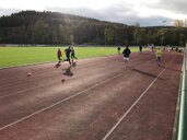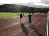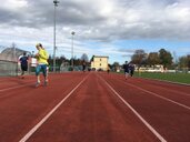 Von 14-15 Uhr nutzten wir die große Turnhalle des Gymnasiums für Sprinttraining. Da die Sonne so schön schien, machten wir das anschließende Intervalltraining im Freien auf der Tartanbahn (2x10 min jeweils 100m Sprint und 100m locker). Aber vorher gab es noch Eis für alle. Bis zum Abendessen rannten die Jungs dem Fußball hinterher, während die Mädels Zweifelderball spielten. Nach dem Abendbrot mit Pizza, Pommes aber auch ganz viel Obst und Gemüse hatten alle genug von Sport. Wir trafen uns im Aufenthaltsraum und hörten uns zuerst 2 Gruppenvorträge über Kraul- und Delfintechnik an. Dann gab es noch Geschenke für alle. Diese mussten allerdings erst erwürfelt werden. Danach verzogen sich alle auf die Zimmer. Der 2. Abend war wesentlich ruhiger und kürzer und irgendwie war jeder froh, endlich entspannen zu können.