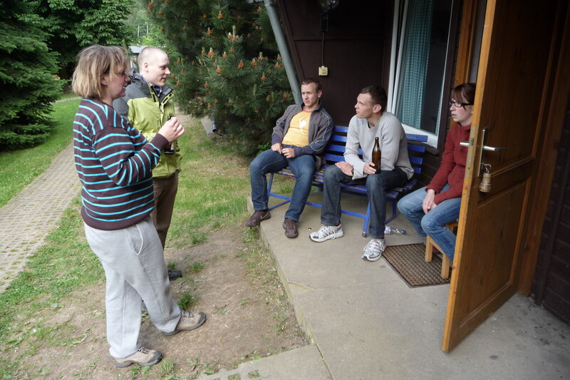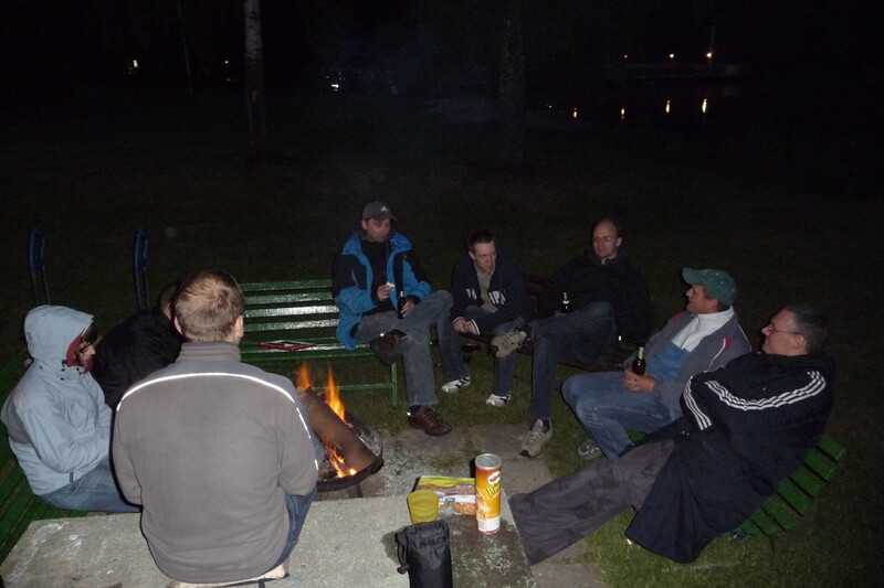 Zum diesjährigen Trainingslager vom 05.06. - 07.06.09 in Falkenhain traf sich die "Stammjugend" (und alle, die sich noch dazu zählen) mal wieder an der Talsperre Kriebstein. Die Ersten erreichten die JH Falkenhain gegen 15.00 Uhr. Wir bewohnten die 4-Betten-Bungalows Nr.13 - 17 in der obersten Reihe. Zusätzlich ergatterten wir den Schlüssel für die "Baude", eine kleine rustikale Hütte auf dem Gelände, was sich als weiser Zug herausstellte, denn es sollte nicht immer die Sonne scheinen. Nach dem Abendessen (Spätzle mit Gulasch) und Hüttenbeziehen ließen wir uns am Wasser nieder. Es war ein wolkenloser Himmel, aber die Temperaturen nahe dem Gefrierpunkt ;-) und das erstandene Holz leider viel zu nass, um wohlige Wärme zu spenden. Trotzdem ließen wir uns nicht vertreiben und schwatzen bis nach Mitternacht.