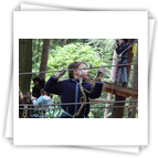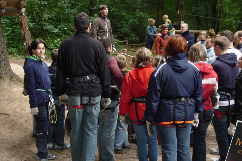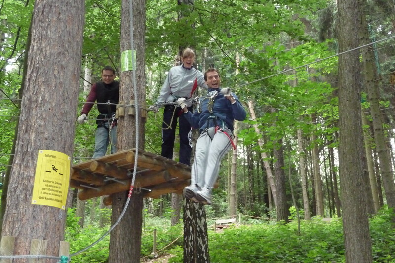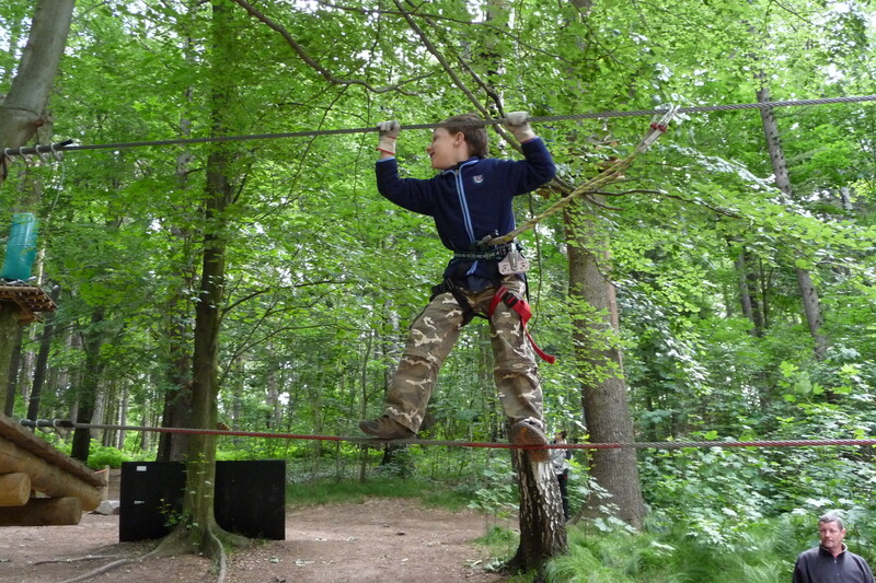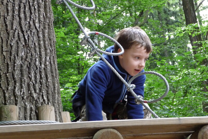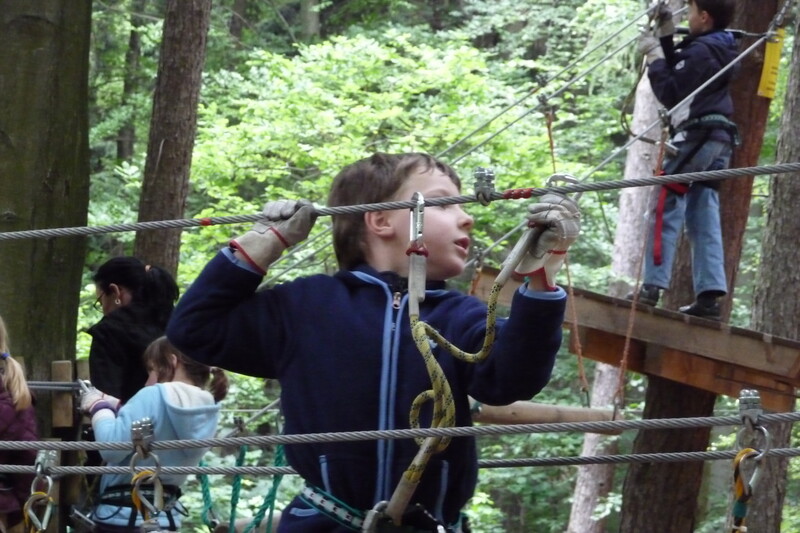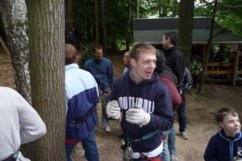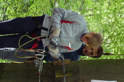 Der Samstag begann (wer wollte) mit Frühsport und einem ausgiebigen Frühstück. 09.30 Uhr marschierten wir los zur Fähre, denn wie immer in Falkenhain stand der Besuch im Kletterwald auf dem Programm. Dort stießen auch noch Conny und Davide zu unserer Gruppe. 10.15 Uhr in Kriebstein angekommen, mußten wir noch eine Weile warten, um uns eine intensive Einführung anzuhören … und dann ging es endlich los. Bis 13.30 Uhr schwangen wir uns von Baum zu Baum. Jeder konnte nach seinen Möglichkeiten die unterschiedlichen Parcoure bewältigen. Sogar der kleine Nick war ganz mutig dabei.