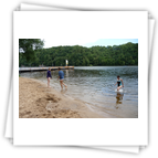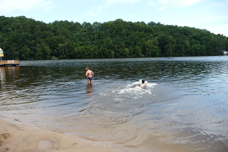 Auch am Sonntag hatten Manche noch nicht genug und joggten ca. 30 min gemütlich an der Talsperre entlang. Nach dem Frühstück räumten und kehrten wir die Hütten und konnten pünktlich 10.00 Uhr alle Schlüssel abgeben. Zum Abschied spielten wir noch 2 Sätze Volleyball und dann trauten sich sogar noch ein paar mutige (oder verrückte) in das 16°C kühle Wasser. 12.00 Uhr war schließlich Aufbruch.