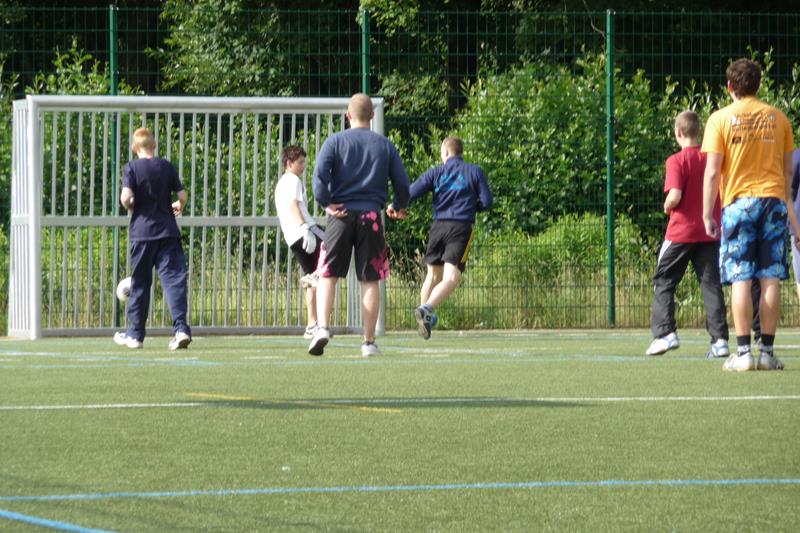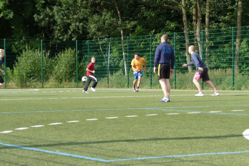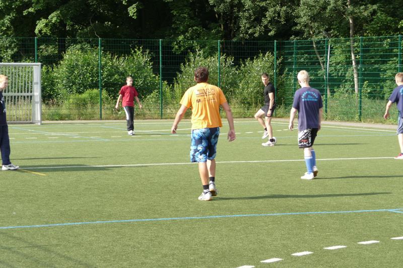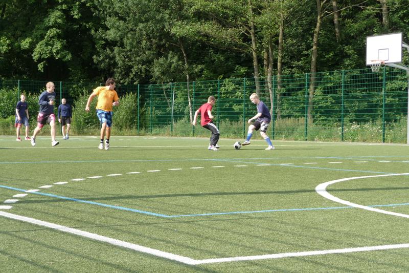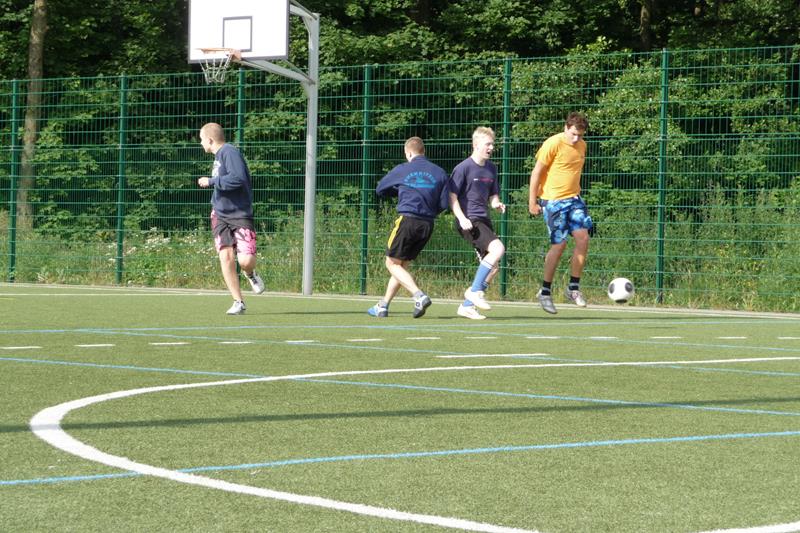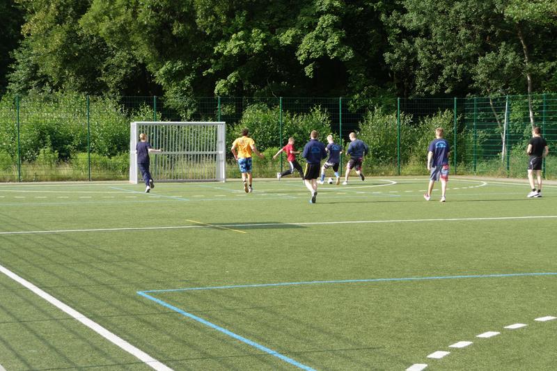 Der Samstag begann 07.00 Uhr mit Frühstück. 08.00 bis 11.00 Uhr konnten wir dann den kleinen Kunstrasenplatz auf dem Gelände zum ausgiebigen Spielen nutzen. An dem Vormittag, aber auch zu allen anderen Spielzeiten, herrschte eine faire Atmosphäre. Die Mannschaften wurden immer mal wieder ausgetauscht, sodass jeder mal gewinnen durfte ;-) . Und auch die Jüngeren wurden gut mit ins Spiel integriert. Sehr zur Freude der Betreuer gab es keine größeren Verletzungen. Nach dem Duschen aßen wir Mittag (Spaghetti) worauf sich die Mittagsruhe mit Schlafen (man Staune :->) bzw.Filmschauen ("Iron Man") anschloss. Danach wurde von 14.00 - 17.00 Uhr - was auch sonst - noch einmal fleißig Fußball gespielt.