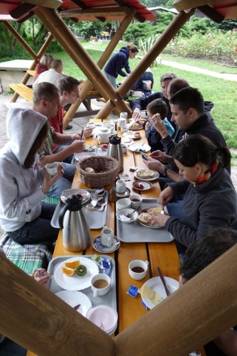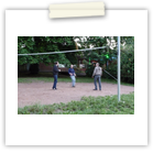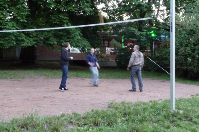 An Sonntag Früh waren es nur noch 3, die sich zum Frühsport durchringen konnten. Nach dem Frühstück wurden dann erstmal in Ruhe die Bungalows geräumt. Anschließend mußten die ersten schon abreisen, während der Rest noch eine Runde Volleyball spielte und dann zum Mittag noch grillte. Gegen 14 Uhr war auch für die Letzten Aufbruch. Und da fing es auch wieder an mit regnen…