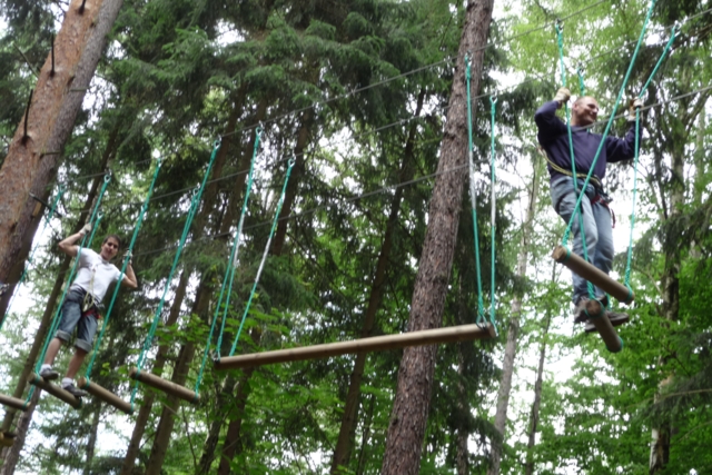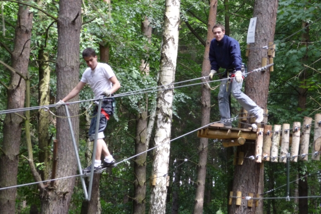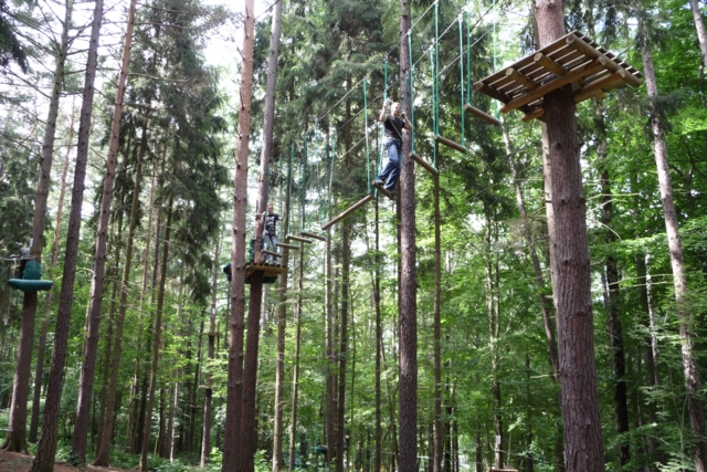 Der Samstag begann für Einige mit Frühsport (Joggen am Ufer entlang und anschließendes Bad im angenehmen Talsperrenwasser). Nach dem Frühstück brachen wir schließlich auf in den Kletterwald, wo 12 von uns reichlich 2 Stunden mal wieder den Blick von oben aus den Baumwipfeln genießen wollten. Für Einige war es das erste Mal, für Andere schon nichts Neues mehr. Aber alle hatten viel Spaß und jeder ging an seine eigenen Grenzen - nur eben in unterschiedlichen Höhen.