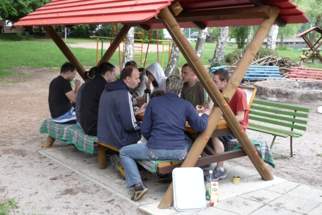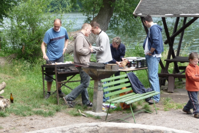 Gegen 18 Uhr waren die meisten unserer 15+2 (Nick und Tabea) Teilnehmer angereist und wir gingen zum Abendbrot (Spaghetti). Danach machten wir es uns wieder am Ufer bequem und quatschten bis nach Mitternacht.