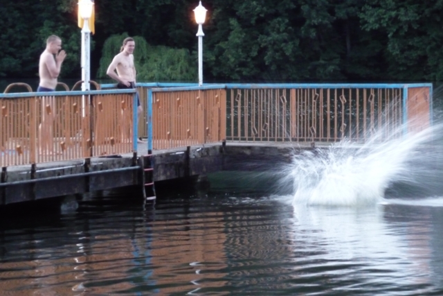 Als wir wieder mit der Fähre + 20 min Fußmarsch zurück waren, hatten Sonja, Patrick und Ellen schon die Nudeln fertig und wir stärkten uns erstmal, um dann den Nachmittag wieder in der Sonne zu verbringen. Zwischendurch stand noch Schwimmen einmal quer durch die Talsperre auf dem Programm. 18Uhr gab es wieder Abendessen (Gulasch und Klöse). Danach saßen wir wieder lange gemütlich beisammen.