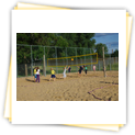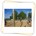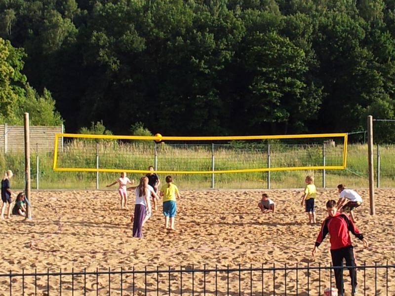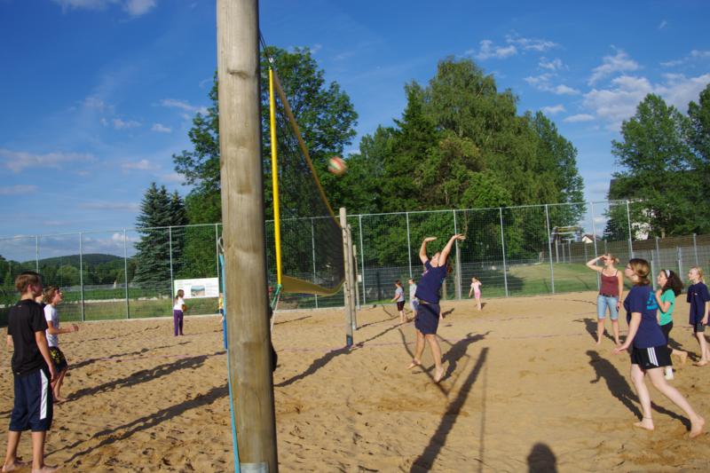 Anreise war wie immer Freitagnachmittag. Nachdem alle ihr Zimmer bezogen hatten, gab es pünktlich Abendbrot und dann ging's auch schon los: wir spielten von 18.30 - 21.30 Uhr Beachvolleyball bzw. Ball über die Schnur. Die Sonne schien und es war herrlich warm. So war der erste Abend sehr gemütlich und wir hatten alle zusammen jede Menge Spaß. Bis allerdings der Letzte eingeschlafen war, sollte noch viel Zeit vergehen :o) .