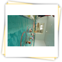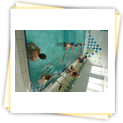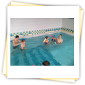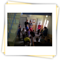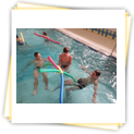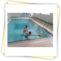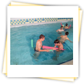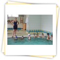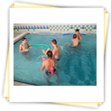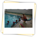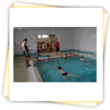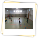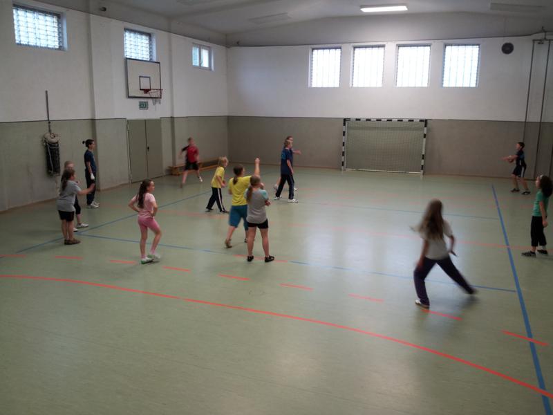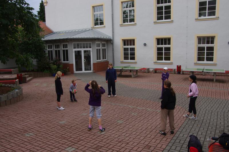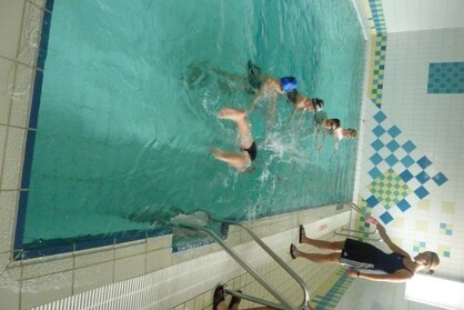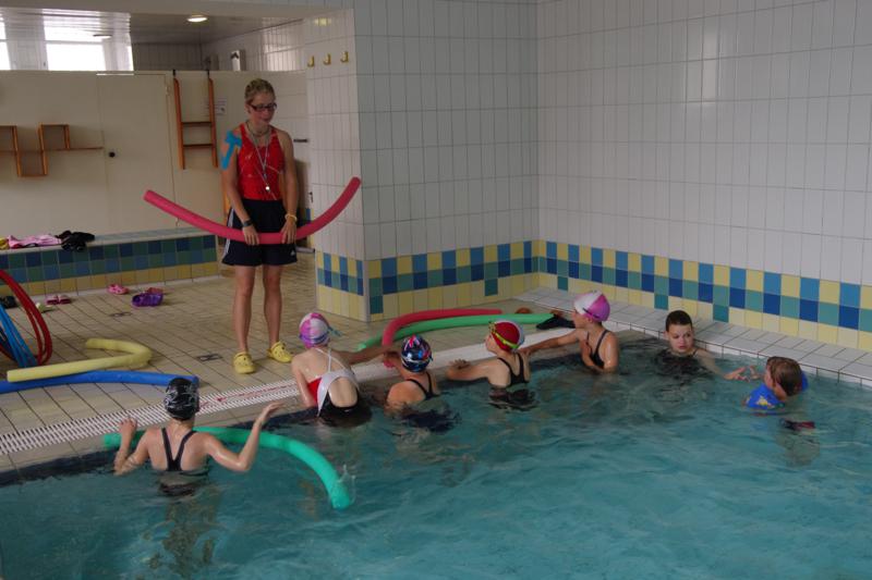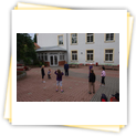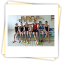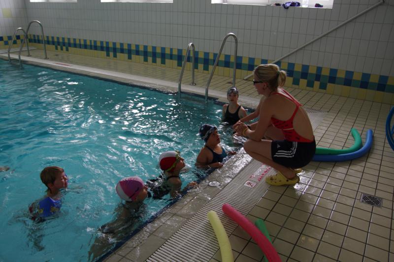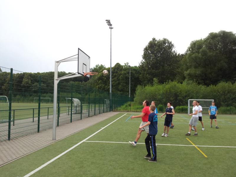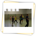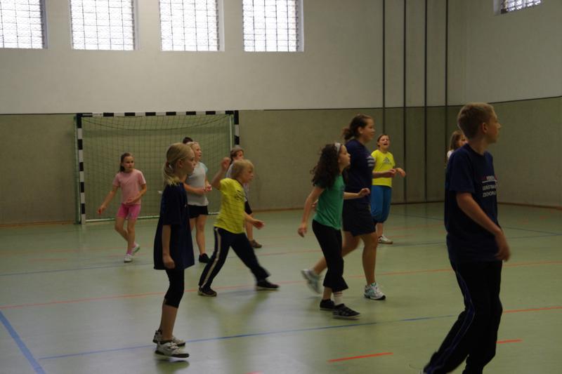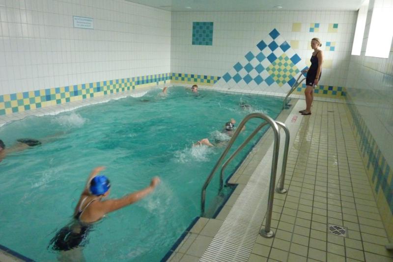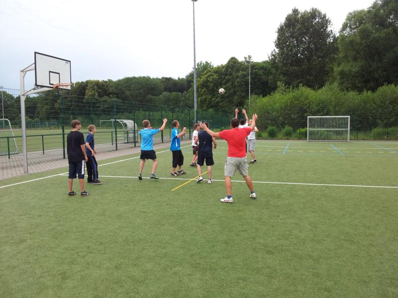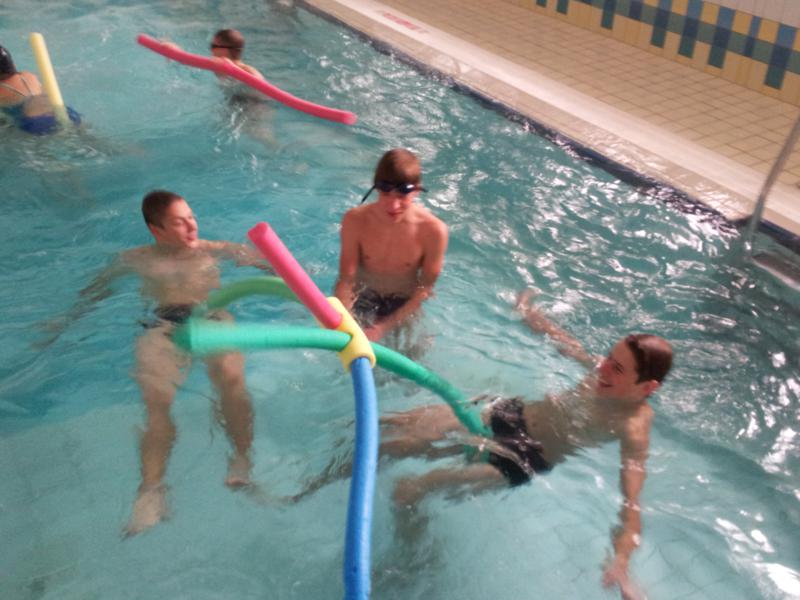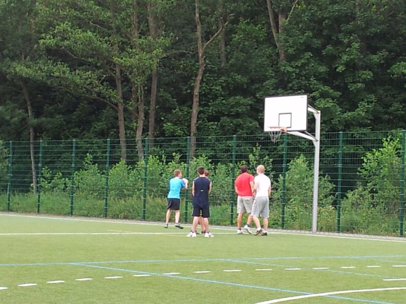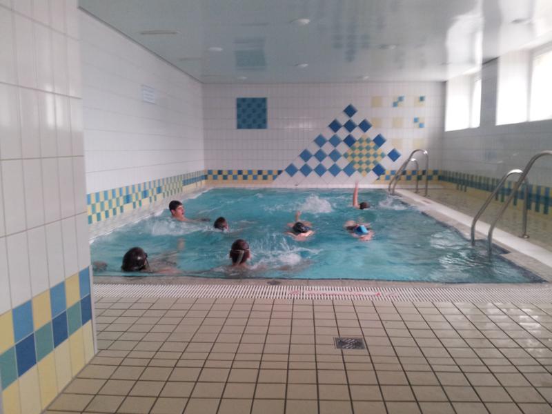 Der Samstag begann zeitig mit Frühsport im Freien. Wir rannten 15 min, machten ein kleines Lauf - ABC und spielten Ball über die Schnur. Dann gab es Frühstück. Danach teilten wir uns auf: Betty, Anne und Ellen zogen mit den Kleinen in die Schwimmhalle los, Patrick spielte mit den Großen Fuß- und Basketball. Alle bewegten sich und schwitzen mächtig, sodass wir uns sehr freuten, als es endlich Nudeln mit Käse und Tomatensoße zum Mittag gab. Nach dem Essen hatten die Großen eine kleine Pause, während Betty und Anne schon wieder Richtung Schwimmhalle unterwegs waren und dort mit den Kindern nochmal das Gelernte vom Vormittag wiederholten. 15.00 Uhr wurde gewechselt: Patricks Große trainierten 2 h im Wasser, wobei neben Befreiungsgriffen aus dem Rettungsschwimmerbereich und Wasserballtips von Max auch bunte Nudeln und die Sprudeldüsen zum Einsatz kamen :o), während die Kleinen sich beim entspannten Minigolf und auf den Zimmern erholten. Nach dem abendlichen Grillen gab es noch ein spannendes 2 Felderball-Turnier: 2 Mannschaften von den Kleinen spielten gegeneinander um den Sieg und 2 Mannschaften von den Großen. Alle spielten sehr fair und am Ende gab es Preise für jeden. Leider endete dieser Abend mit einem traurigen Zwischenfall: 2 min vor Ende des letzten Spiels knickte Tabea H. um und der Außenknöchel tat so weh, dass wir den Notarzt rufen mussten. (Glücklicherweise stellte sich nach dem Röntgen im Krankenhaus raus, dass nichts gebrochen ist. Aber die arme Tabea war natürlich trotzdem mächtig traurig, dass das schöne Wochenende so abrupt beendet war. WIR WÜNSCHEN DIR GUTE BESSERUNG !!!) Während die Großen nach dem Schreck doch noch eine Runde Volleyball spielten, gingen die Kleinen auf ihre Zimmer und fielen sehr schnell sehr erschöpft ins Bett.