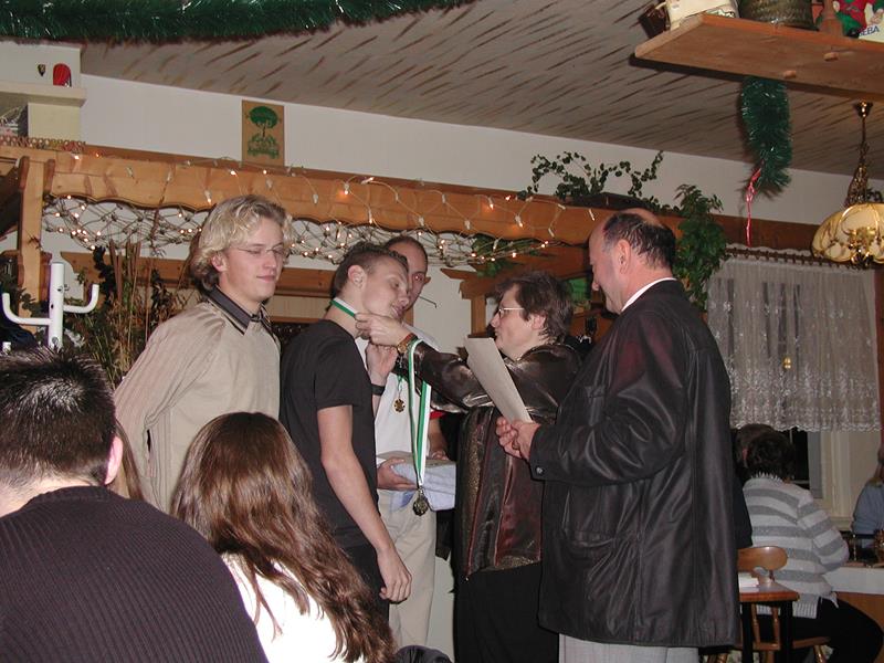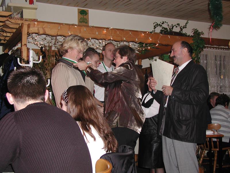 Natürlich war es am 30.11.02 auch die letzte Jahresabschlußfeier als Post SV. Ob es daran lag oder einfach nur Zufall war – es waren jedenfalls fast alle da. Viele, die schon nicht mehr dem Verein angehören, weil sie außerhalb von Chemnitz studieren, arbeiten oder lernen, waren gekommen. Wie immer wurden zu Beginn die Sieger und Platzierten der Bestenermittlung geehrt, bevor wir dann mit viel Musik und Tanz, Essen und Trinken, Spaß und dem einen oder anderen intensiven Gespräch den Abend gemeinsam verbrachten. René Stötzner, unser neuer „Chef“ war auch gekommen, um mit uns zu feiern. Was soll da in der neuen Sportgemeinschaft CSGH e.V. noch schiefgehen?!