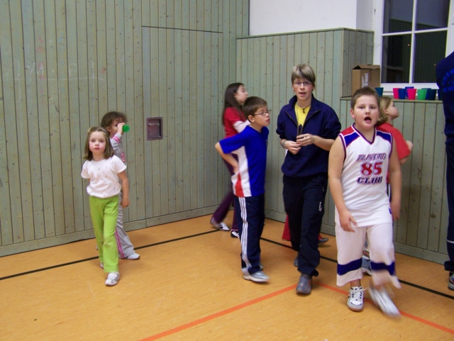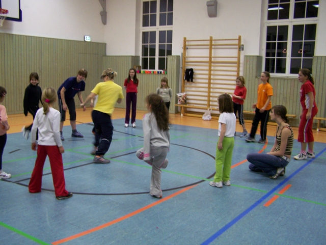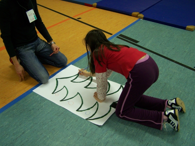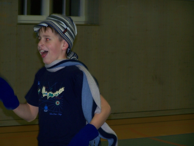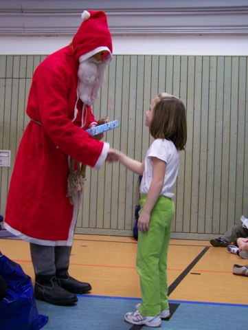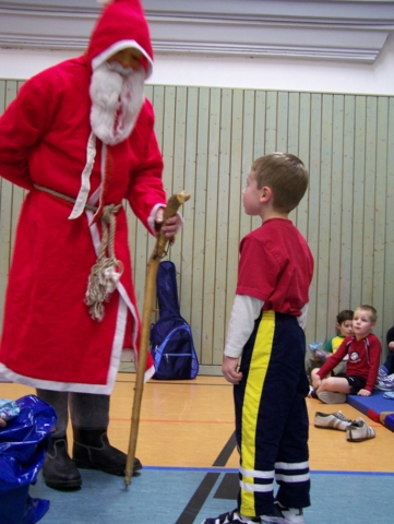 Zu unserer Weihnachtsfeier am 01.12.07 mal wieder in der Turnhalle der GS Harthau waren 30 Kinder gekommen. Und auch in diesem Jahr hat der Weihnachtsmann den Weg zu uns gefunden, sodass es gleich zu Beginn für jeden ein Geschenk gab. Danach teilten wir die Kinder in drei Staffeln ein („Schneeflöckchen“, „Winterkinder“, „Weihnachtsmänner“). Bei den verschiedensten Aufgaben versuchten die Teams so viele Punkte wie möglich zu erkämpfen: Socken aufhängen, mit Süssigkeiten füllen und wieder abnehmen; Weihnachtsbaum bemalen, „Schneebälle“ mit dem Stock und auf dem Kopf transportieren, Mohrenköpfe ohne Hände (nur mit dem Mund) aus dem Wasser fischen, kegeln, mit Socken, Handschuhen und Mütze laufen,… . So verging die Zeit viel zu schnell. Die letzte viertel Stunde machten wir noch zwei kleine Kreisspiele und dann kamen nach 2 Stunden auch schon wieder die Eltern zum Abholen.