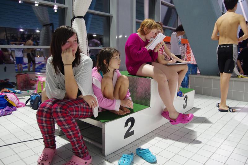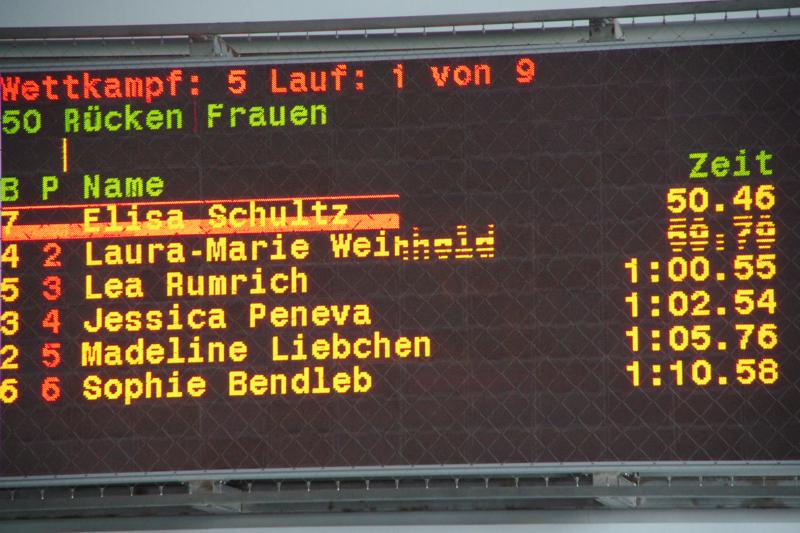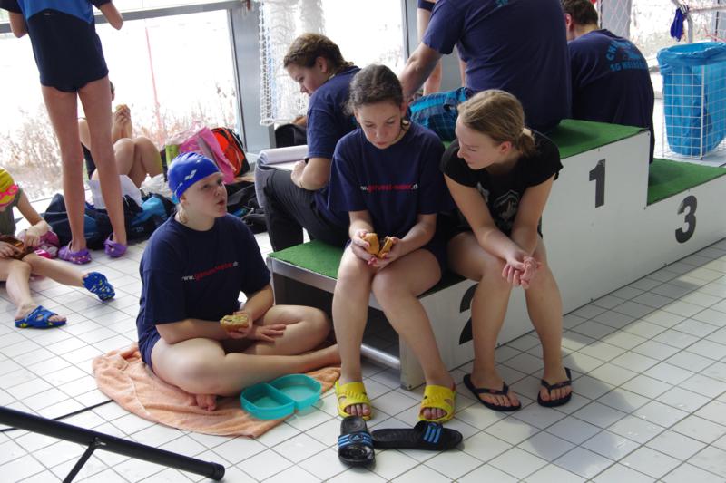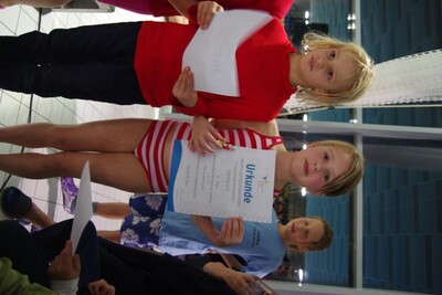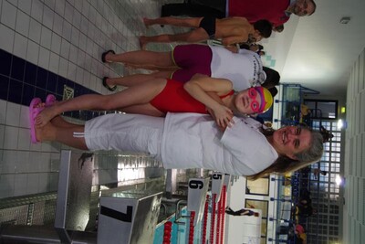 Zu unserem letzten Wettkampf in 2012 brachen wir am Samstag 11.30 Uhr nach Leipzig auf. Dank einem super Angebot der Firma "WIES-FASZINATOUR" konnten wir in einem absoluten 5-Sterne-Luxusbus anreisen und hatten schon auf dieser Anreise mächtig viel Spaß. In Leipzig erwartet uns ein toll organisierter Wettkampf mit einem rießigen Starterfeld. Wir hatten unseren Platz während des Wettkampfes zwar direkt am Siegerpodest, ganz oben stehen durfte aber an diesem Tag keiner von uns - die Konkurrenz war einfach zu schnell ;-) ! Unsere gute Laune ließen wir uns davon aber nicht verderben. Immerhin schafften es viele, neue Bestzeiten zu schwimmen. Und schließlich gewann unsere jüngste Starterin über 25m-Kraul-Beine noch eine Urkunde für den 6. Platz. Pünktlich 19.00 Uhr stiegen wir wieder in unseren Bus ein und schauten uns auf der Rückfahrt "Shrek" an (der nette Busfahrer hatte extra eine DVD für uns gekauft.). Manche waren allerdings so kaputt, dass sie schon nach wenigen Fahrtkilometern schliefen. 20.30 Uhr erreichten wir überpünktlich das ACC.