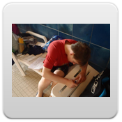 Im Auto machte sich ganz schnell gute Stimmung breit und die Fahrtzeit von reichlich 6 Stunden, mit Pause in einer Pizzeria, war kein Problem. Gegen 21 Uhr waren wir am Ziel und wurden von Mechthild und Jürgen Wiese in Lünen herzlich empfangen. Nach dem ersten Schock, man müsse in einem Museum übernachten (geäußert von Karl), gaben die alten Möbel Wii, Spiele und Musikanlage frei. Für die Unterhaltung war gesorgt und reichlich Obst, Getränke und auch Süßes waren da - das Abendprogramm konnte seinen Lauf nehmen.