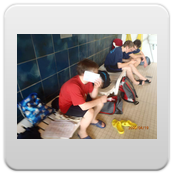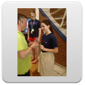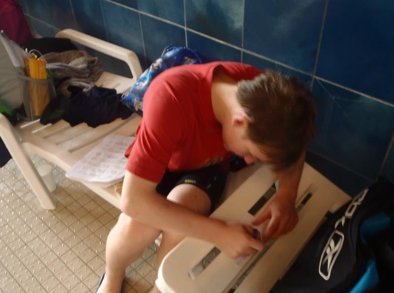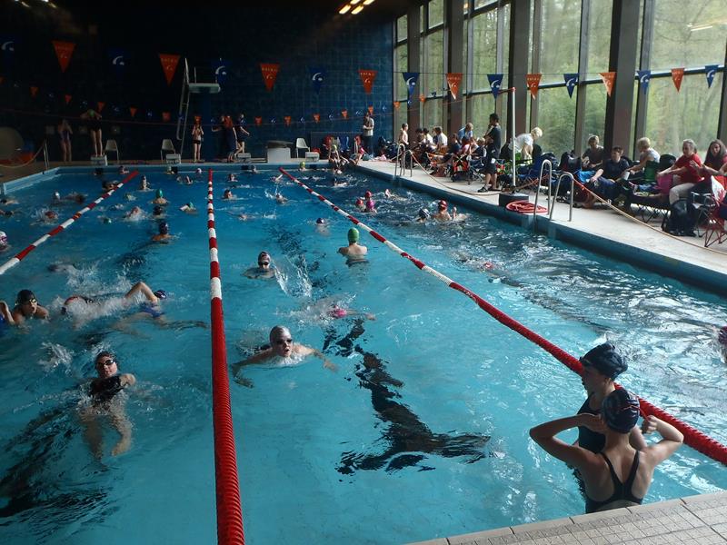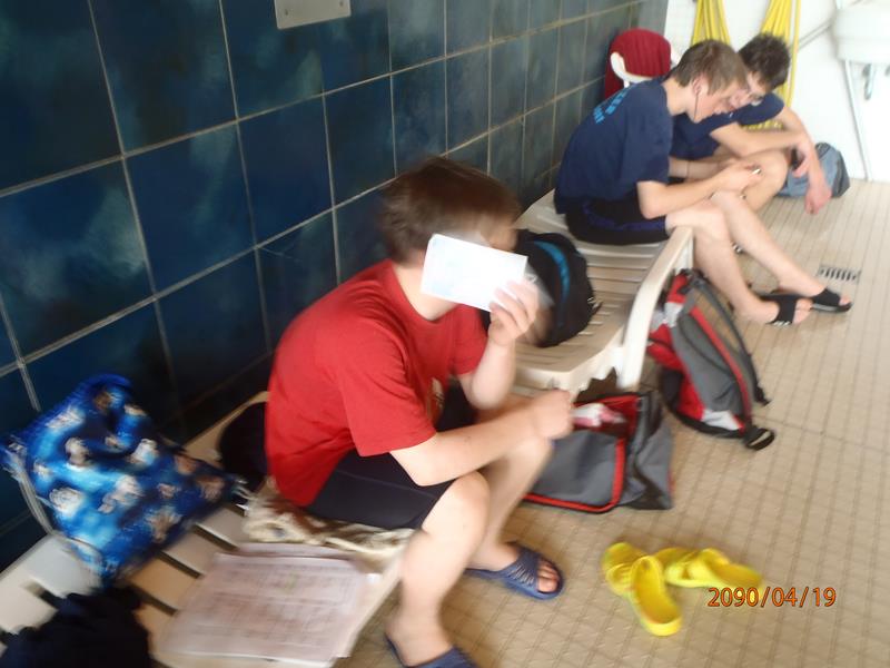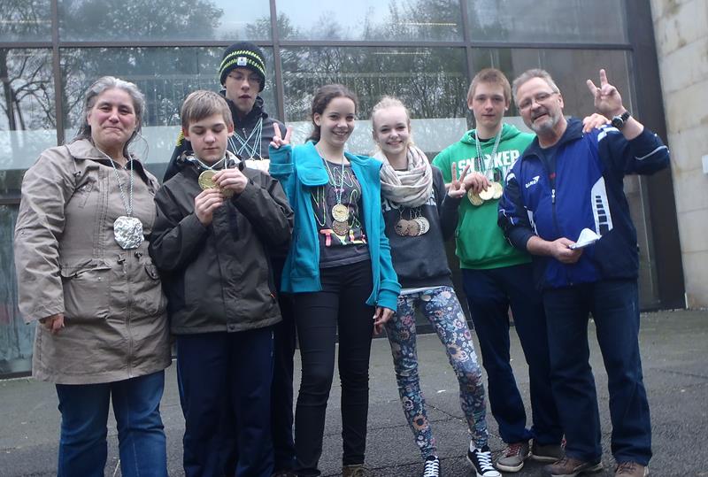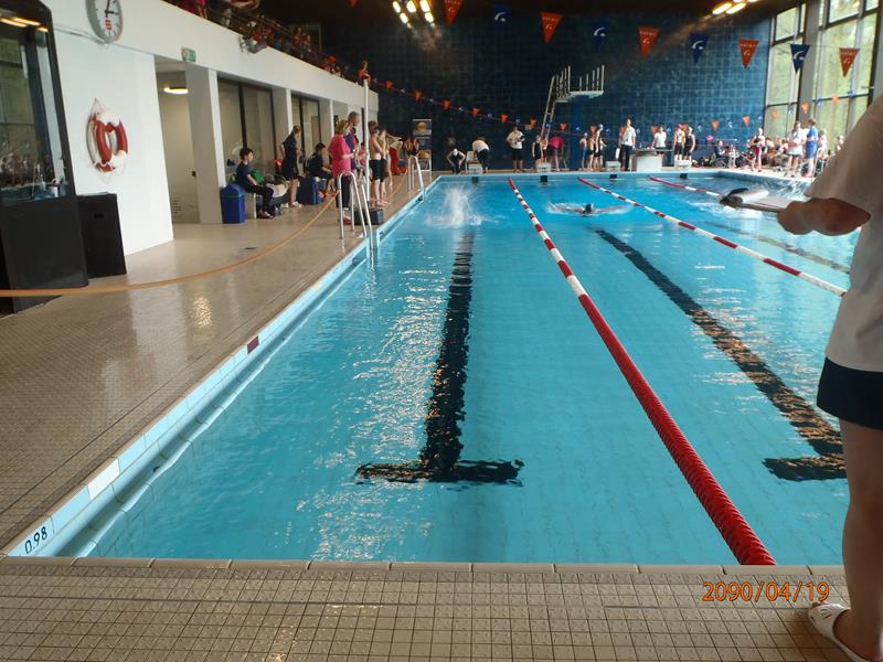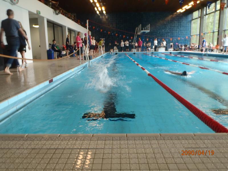 11 Uhr war Abfahrt zur Schwimmhalle. Da der Wettkampf erst 14 Uhr begann, nutzten wir die Zeit und besichtigten das nahe Schloss Nordkirchen. Wieder in der Halle angekommen begann mit dem Einschwimmen der Wettkampf. Jeder gab sein Bestes; die Schwimmer im Wasser, Dietmar als Schiri und Geli als Mannschaftleiter und Wenderichter. Am Ende konnte jeder Schwimmer mit Medaillen behangen gute Wettkampfergebnisse mit nach Hause nehmen. Geli hat eine Pappsilbermedaille für gute Arbeit als Kampfrichter erhalten.